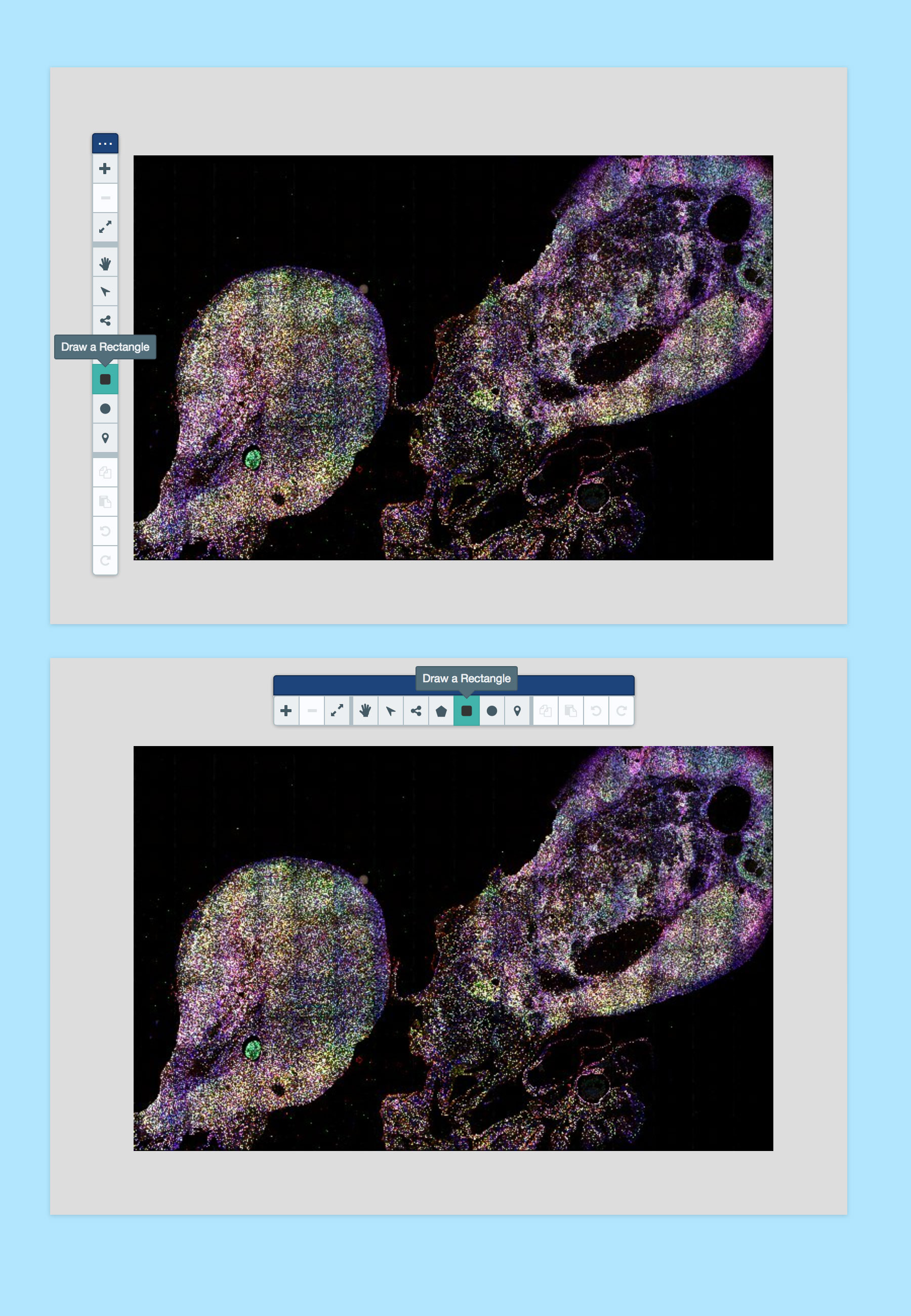 Toolbar FeatureVIEW LARGERMockup concepts for toolbar feature, which allows users to zoom in and out of the image, and create regions of interest (ROI) -