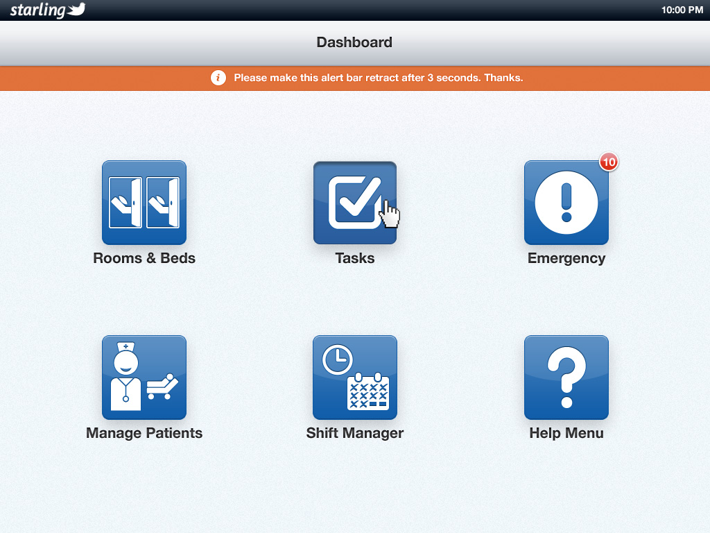 Provider InterfaceVIEW LARGERHome screen for tablet for health care providers assigned to handle patient requests -